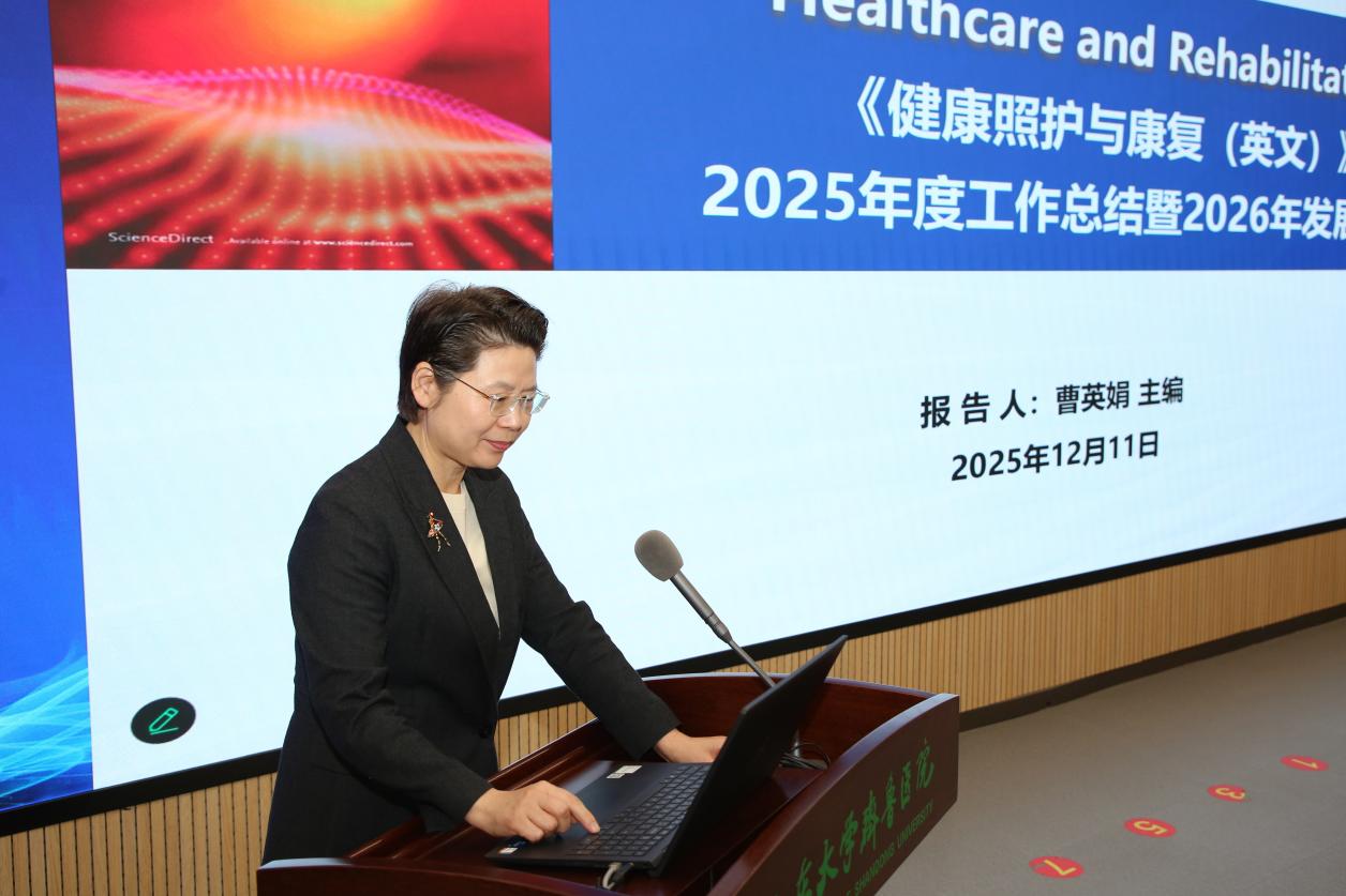 12月11日,山东大学主办期刊《健康照护与康复(英文)》(Healthcare and Rehabilitation, 简称H&R)2025年度编委会会议以线上线下相结合的形式在济南顺利召开。中国工程院院士董尔丹受邀线上致辞。山东大学齐鲁医院院长陈玉国,山东大学科技期刊社副社长胡春霞参加会议并致辞。H&R共同主编国家卫生健康委员会卫生经济与政策研究重点实验室李士雪教授、山东大学智能康复装备研究中心岳寿伟教授、山东大学护理与康复学院曹英娟教授,副主编康复大学刘奇迹教授、国家健康医疗大数据研究院薛付忠教授、山东大学护理与康复学院王克芳教授、新加坡国立大学董艳虹教授、康复大学杨锦飞教授、浙江大学徐小林教授等编委、青年编委和作者代表,科技期刊社医学期刊中心孙瑶,科爱公司健康医学、生命科学和社会科学出版总监蒋磊和编辑部工作人员参加会议。李士雪、岳寿伟、孙瑶分别主持会议。