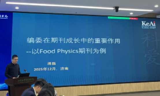 科爱公司出版总监蒋磊做了题为“编委在期刊成长中的重要作用—以Food Physics期刊为例”的报告,介绍了科爱公司、期刊发展阶段的编委工作职责,并以Food Physics期刊的实践经验为案例,剖析了编委在邀约稿件、同行评议及宣传推广等方面发挥的关键作用。