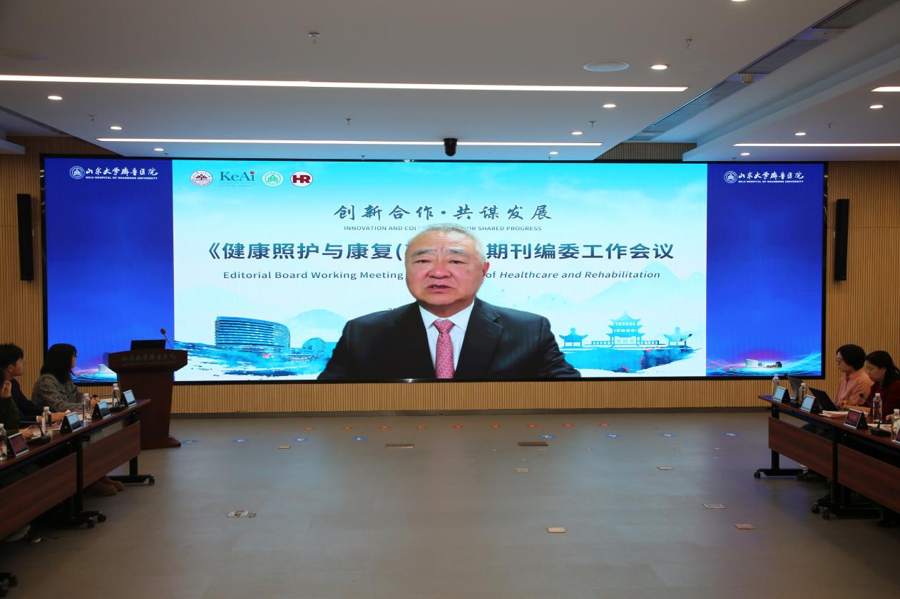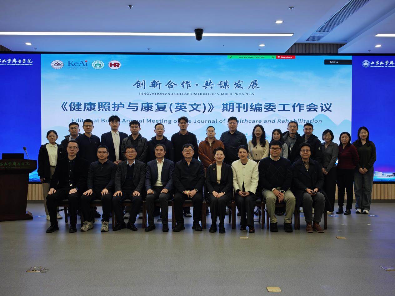 12月11日,山东大学主办期刊《健康照护与康复(英文)》(Healthcare and Rehabilitation, 简称H&R)2025年度编委会会议以线上线下相结合的形式在济南顺利召开。中国工程院院士董尔丹受邀线上致辞。山东大学齐鲁医院院长陈玉国,山东大学科技期刊社副社长胡春霞参加会议并致辞。H&R共同主编国家卫生健康委员会卫生经济与政策研究重点实验室李士雪教授、山东大学智能康复装备研究中心岳寿伟教授、山东大学护理与康复学院曹英娟教授,副主编康复大学刘奇迹教授、国家健康医疗大数据研究院薛付忠教授、山东大学护理与康复学院王克芳教授、新加坡国立大学董艳虹教授、康复大学杨锦飞教授、浙江大学徐小林教授等编委、青年编委和作者代表,科技期刊社医学期刊中心孙瑶,科爱公司健康医学、生命科学和社会科学出版总监蒋磊和编辑部工作人员参加会议。李士雪、岳寿伟、孙瑶分别主持会议。